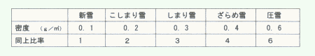 | 雪の密度は雪質によって大きく異なります。 |