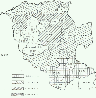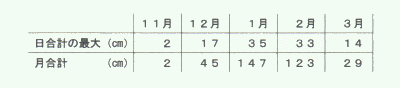 | 豊岡測候所の過去30年間統計による降雪の深さ |