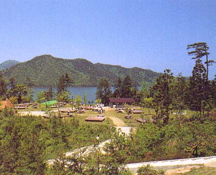 テントサイト(フロアー) 26基 炊事棟(2) ファイヤーサークル 広場(芝生)・ ローラーすべり台・ ミニアスレチック・ 駐車場 |