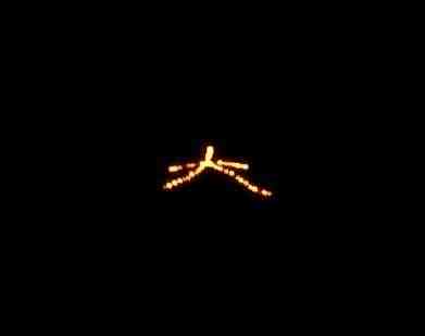 ![]() 丹波大文字(2003年8月16日撮影) 大文字の送り火といえば京都五山の送り火が有名ですが,福知山市の「姫髪山」や,久美浜町 の「甲山」でも,お盆に大文字の送り火がともされます。 小さい頃,京都の送り火が見えていると思いこんでいました。 福知山は京都市から北西におよそ80Kmはなれていて,特急列車で1時間半,自動車でも2時 間弱かかります。日本海の方が近いくらいの田舎です。 ですから,京都市内の送り火が見えるはずがありません。(>_<) |