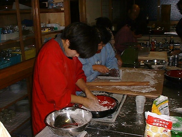 昨年に私個人で作ったそば粉がたくさんあったので、3月11日(土)の夕方、若者会の会員、その他有志に