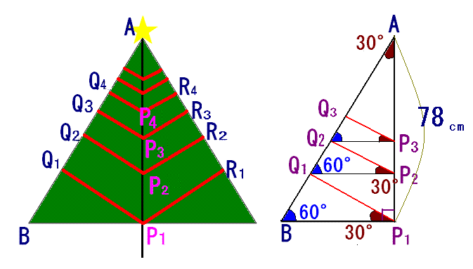 <問題> ここで問題です。P1Q1+P1R1+P2Q2+P2R2+P3Q3+P3R3・・・・・は何cmになるでしょうか。 |