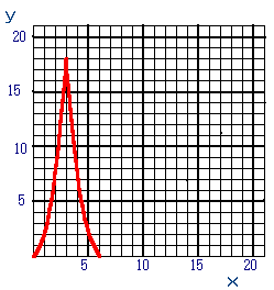 ![]() | 左図のように、直角をはさむ2辺の長さが6cmの合同な直角二等辺三角形△ABCと△PQRがあります。△PQRが矢印の方向に毎秒2cmで、点Rが点Cまで動きます。 x秒後の三角形の重なった面積をyp2とする。x、yの関係を式に表し、グラフを書きなさい。 |
